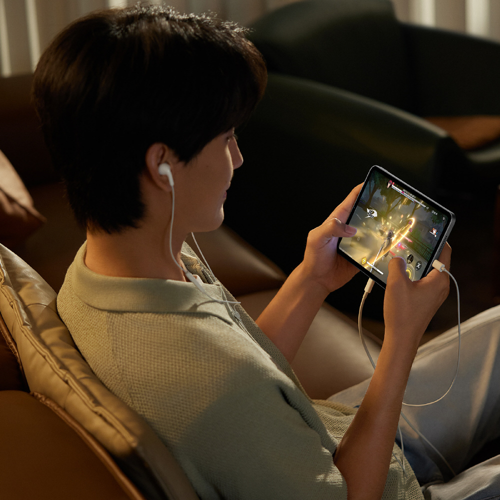 スピーカー、バッテリー、ハプティックモーターを左右対称に配置し、さらにAndroidタブレットとして初めてSoCを中央に搭載することで、ほぼ完璧な重量バランスを実現しました。その結果、手に持ったときにより軽く、バランスの取れた感覚を得られます。