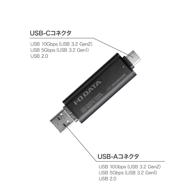 「USB 10Gbps(USB 3.2 Gen2)USB-A&USB-C対応 スティックSSD」