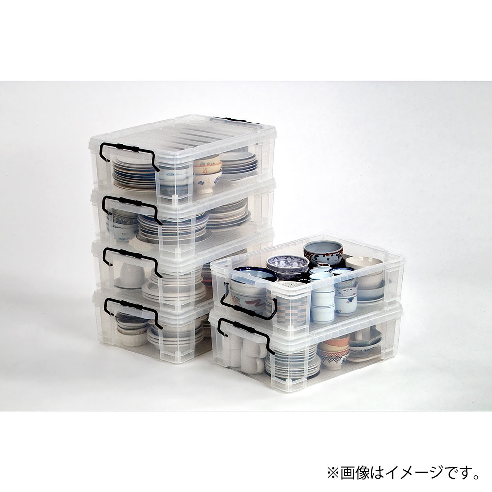 中身が見える小物整理に適したフタ付きコンテナです。
