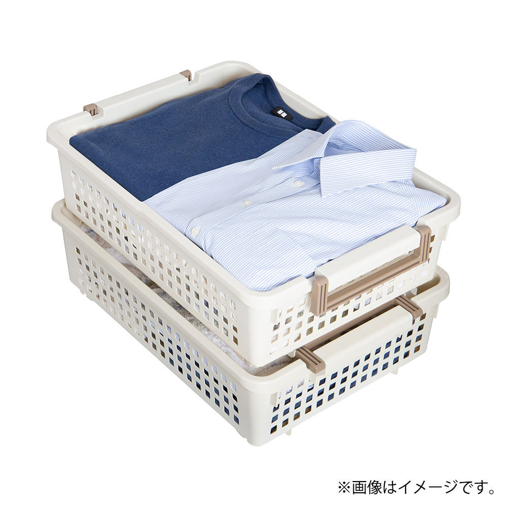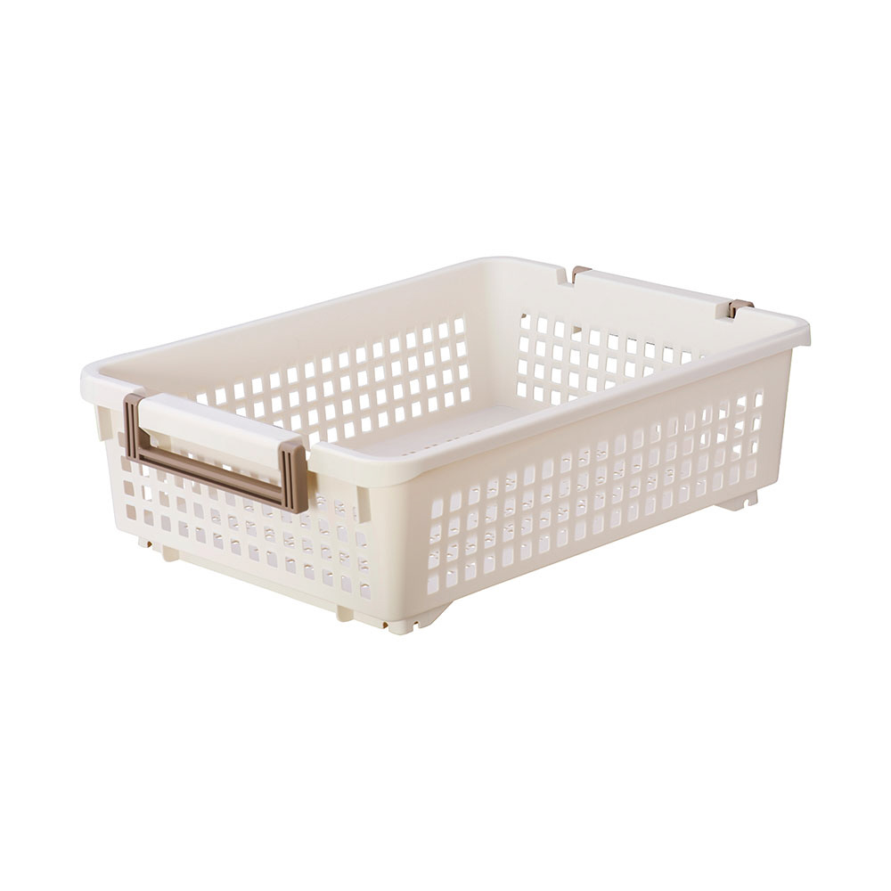 収納バスケット 取っ手付き 浅型 ワイド キャスター付き アイボリー 191070