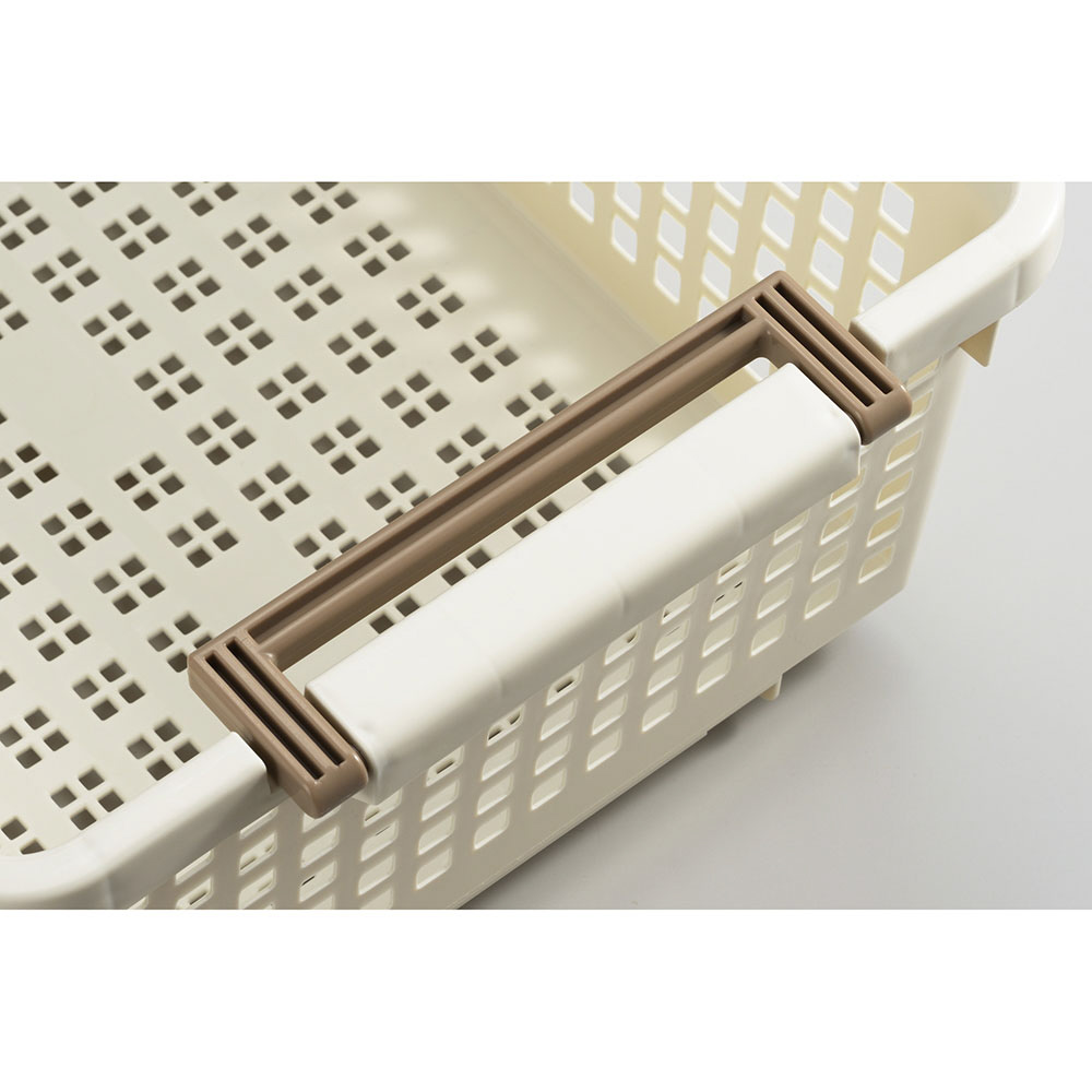 収納バスケット 取っ手付き スリム キャスター付き アイボリー 181098