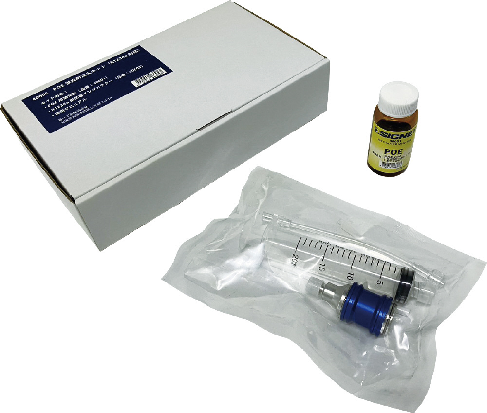 カーエアコン用 POE蛍光剤注入キット R1234yf対応 オイル・注入器セット 簡単ガス漏れ検知 40606