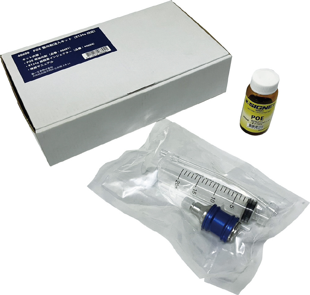 カーエアコン用 POE蛍光剤注入キット R134a対応 オイル・注入器セット 簡単ガス漏れ検知 40608