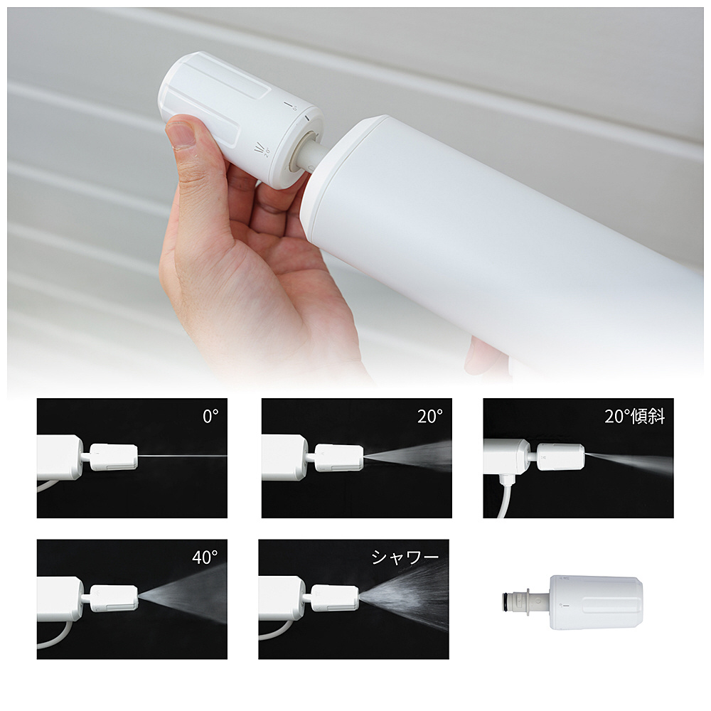 3段階の水圧切替と、5つの可変ノズルで、頑固な汚れから植栽の水やりまで可能!