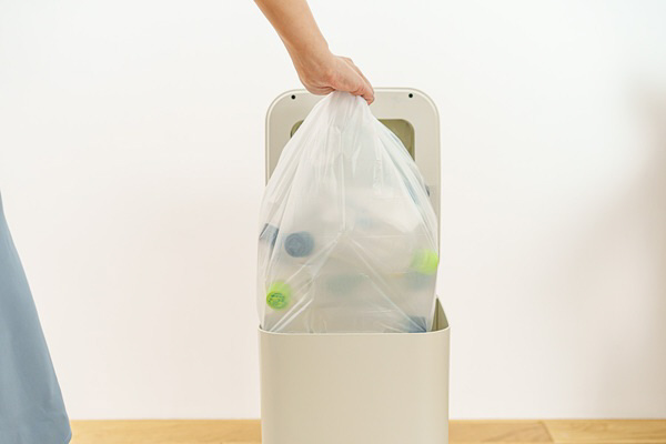 袋収納枠を持ち上げて専用リフィルを取り付けるだけなので、リフィルセットはとても簡単!15L(1ロール)で約20回、ゴミ袋が生成できます。