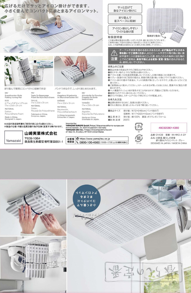北欧風暮らしの定番 折り畳みアイロンマット グレー GY 1438