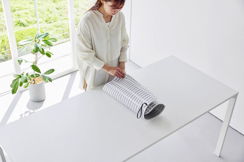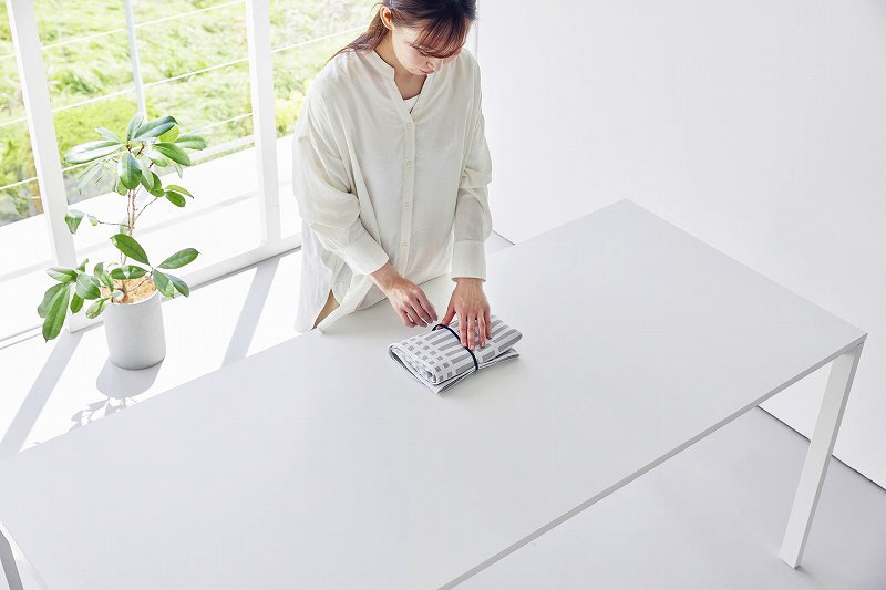 バンドつきなので小さく畳んでコンパクトにしっかりまとめられ、省スペースに収納できます。