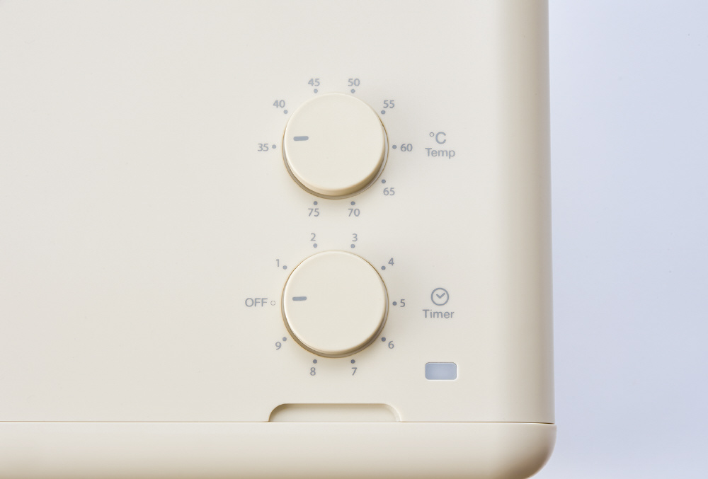 温度調整ダイヤルとタイマーダイヤルのシンプルな操作感のドライフード&ヨーグルトメーカー。