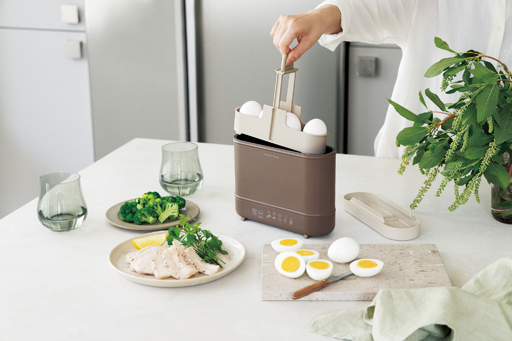 ゆでたまご・温泉たまごからレトルトの湯せんまで、温度も時間もすべて「エッグ&ボイルクッカー」におまかせ。さらに、ぷるぷるした食感のたまご料理や、ヘルシーなサラダチキンなど、6つの調理メニューをほったらかしでお手軽に楽しめます。