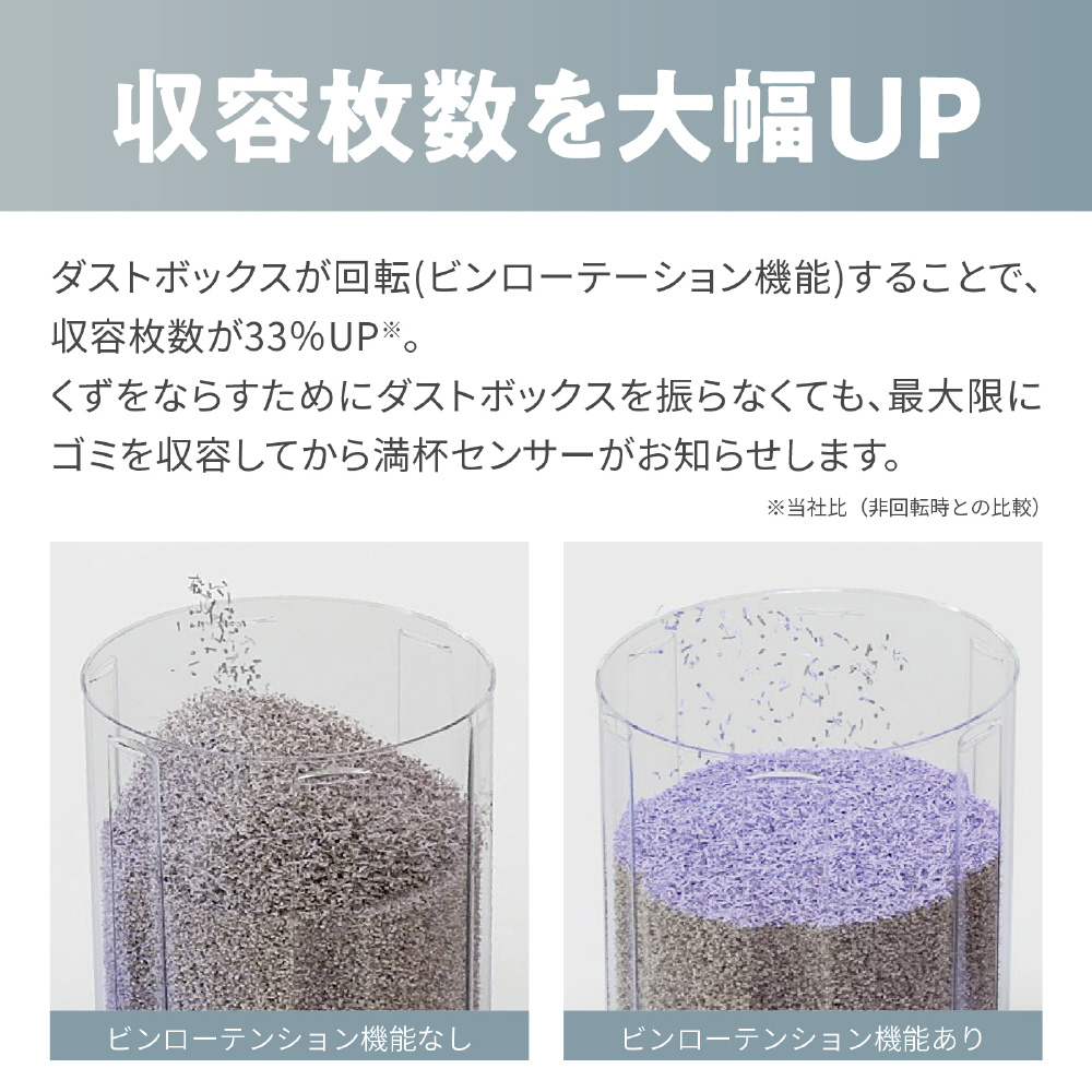 ダストボックスが回転(ビンローテーション機能)することで、収容枚数が33%UP*。