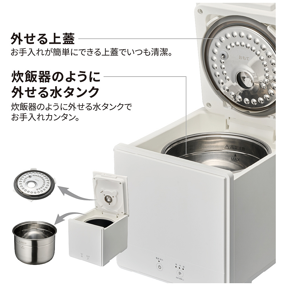 炊飯器のように外せる水タンクで、お手入れも給水もカンタン。