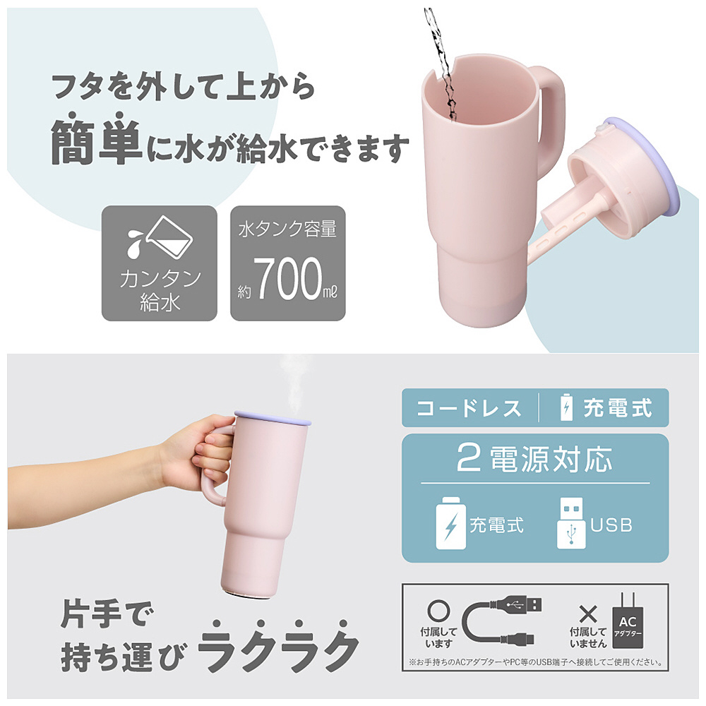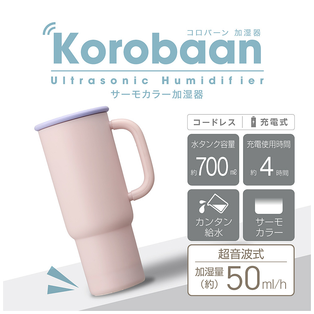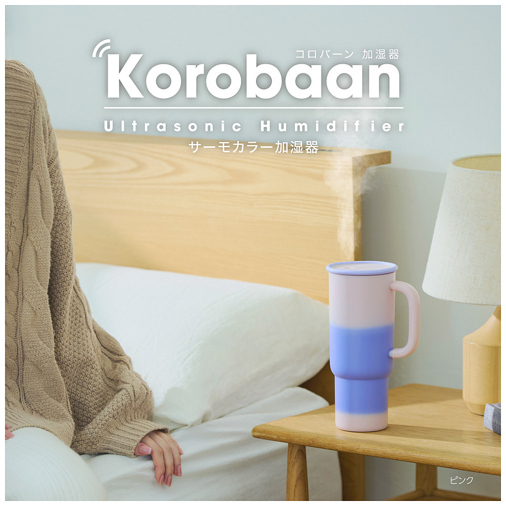 取っ手付きタンブラー型デザインで、冷たい水を入れると本体カラーが変化する「Korobaan(コロバーン) サーモカラー加湿器」