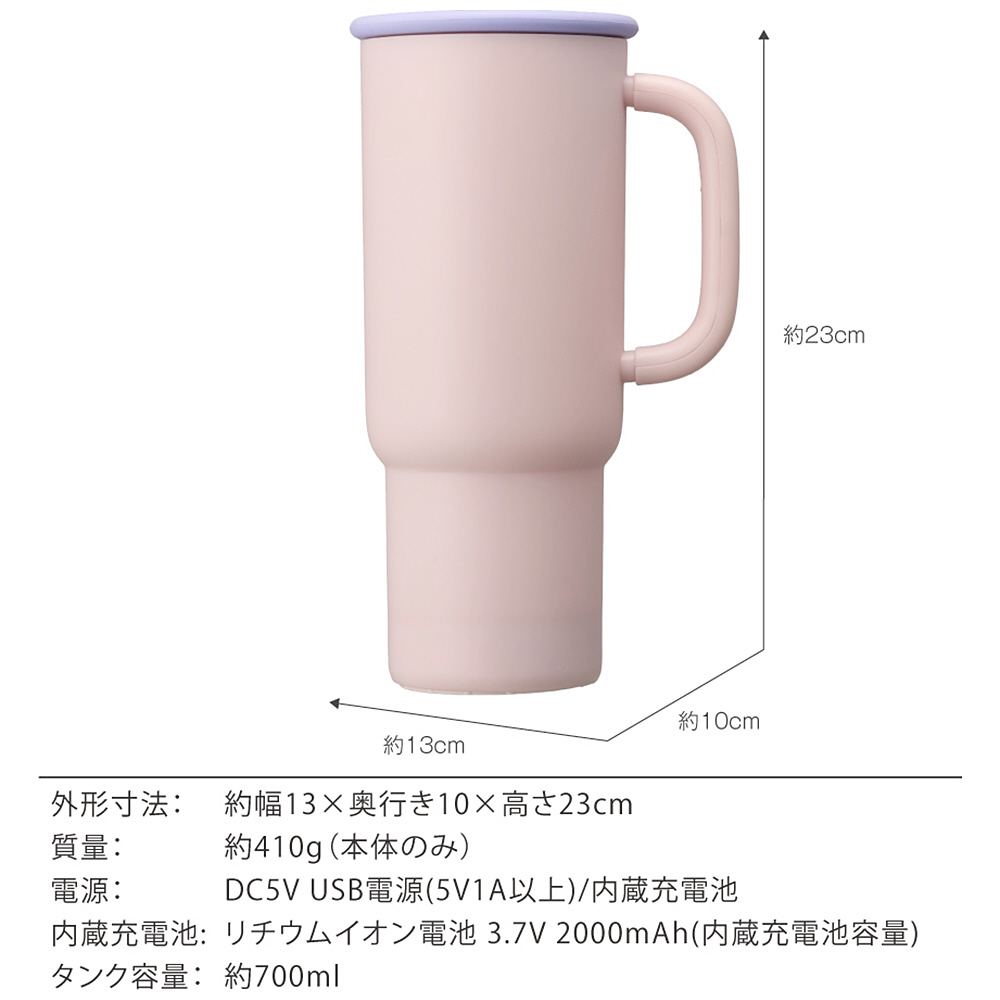 取っ手付きタンブラー型のデザインにより、持ち運びやすく、給水もスムーズに行えます。さらに、取っ手があることで満水時でも安定して運ぶことができ、安心してご使用いただけます。