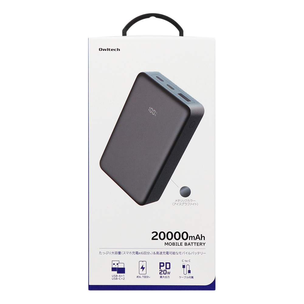 20000mAh 最大PD20W出力対応 USB Type-C入出力/USB Type-A出力 モバイルバッテリー アイスグラファイト OWL-LPB20028-GY