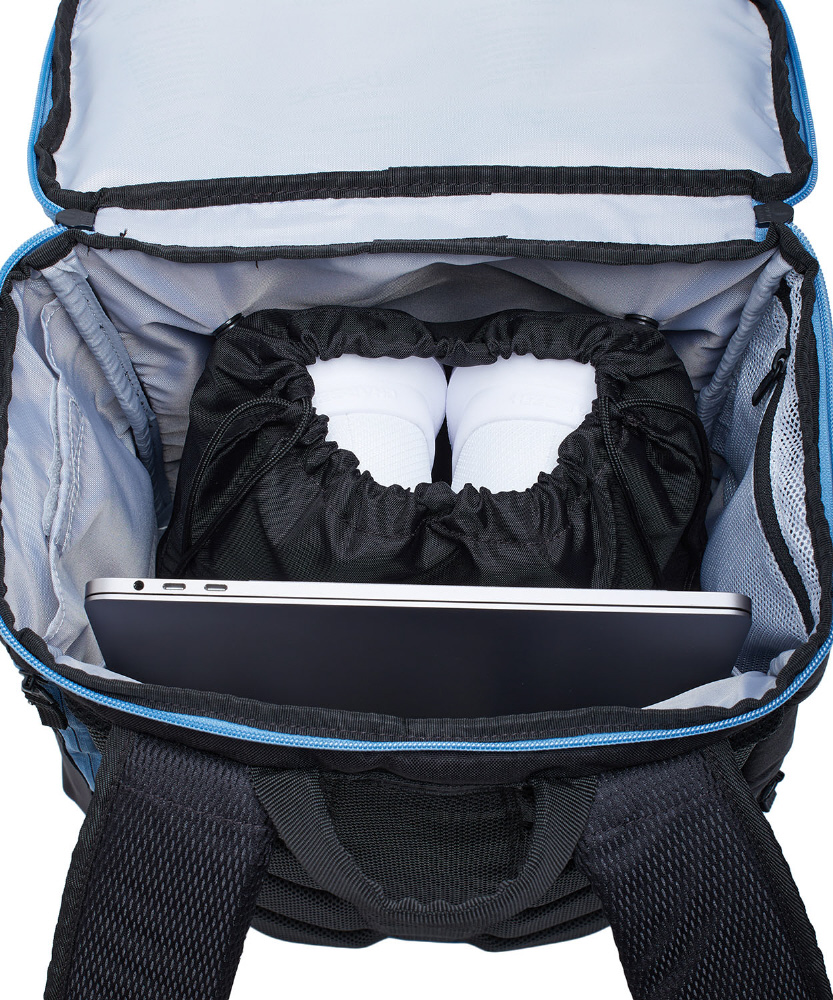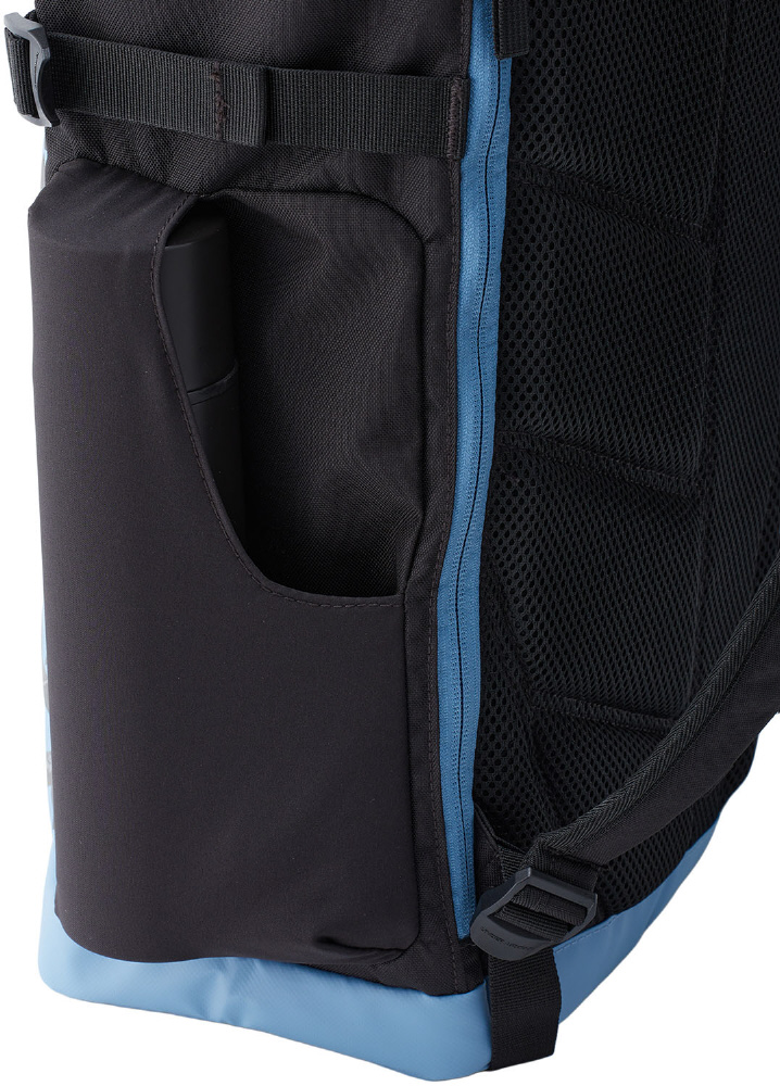 内側には取り外し可能なサックパックを搭載。ウォーターボトル用のサイドポケット(シェイカーも入れられる幅)。