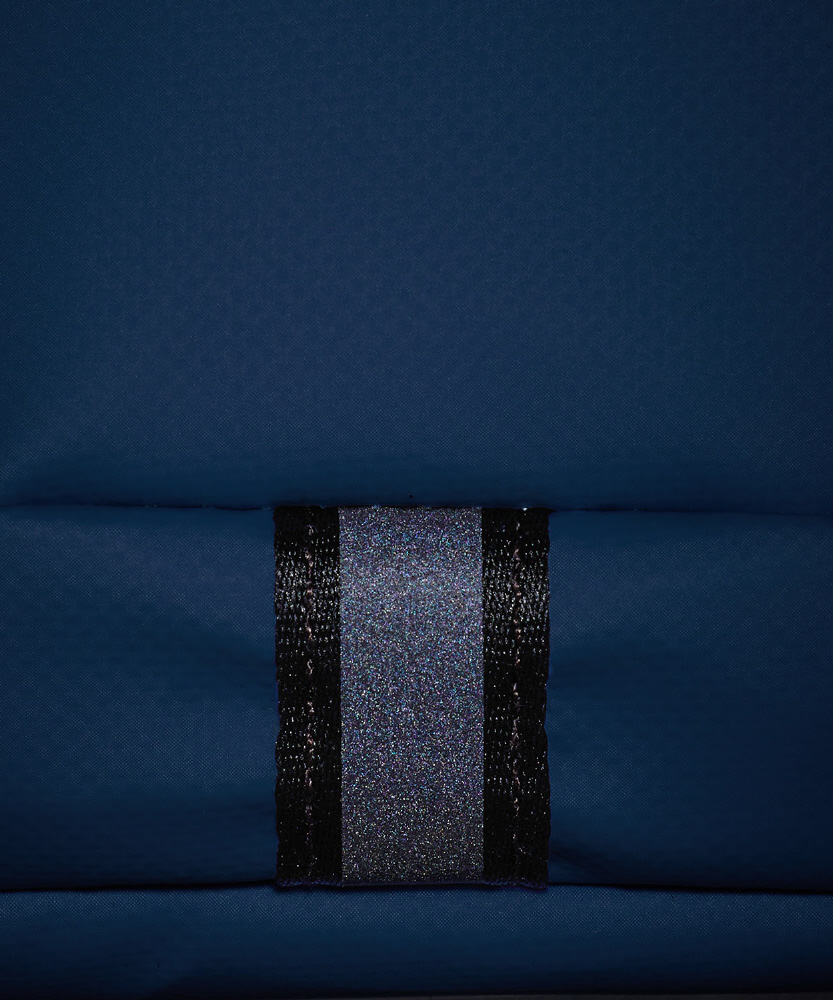 バックパックの底のリフレクトテープが視認性を確保。バックパック本体36L、付属サックパック5Lの合計約40L。