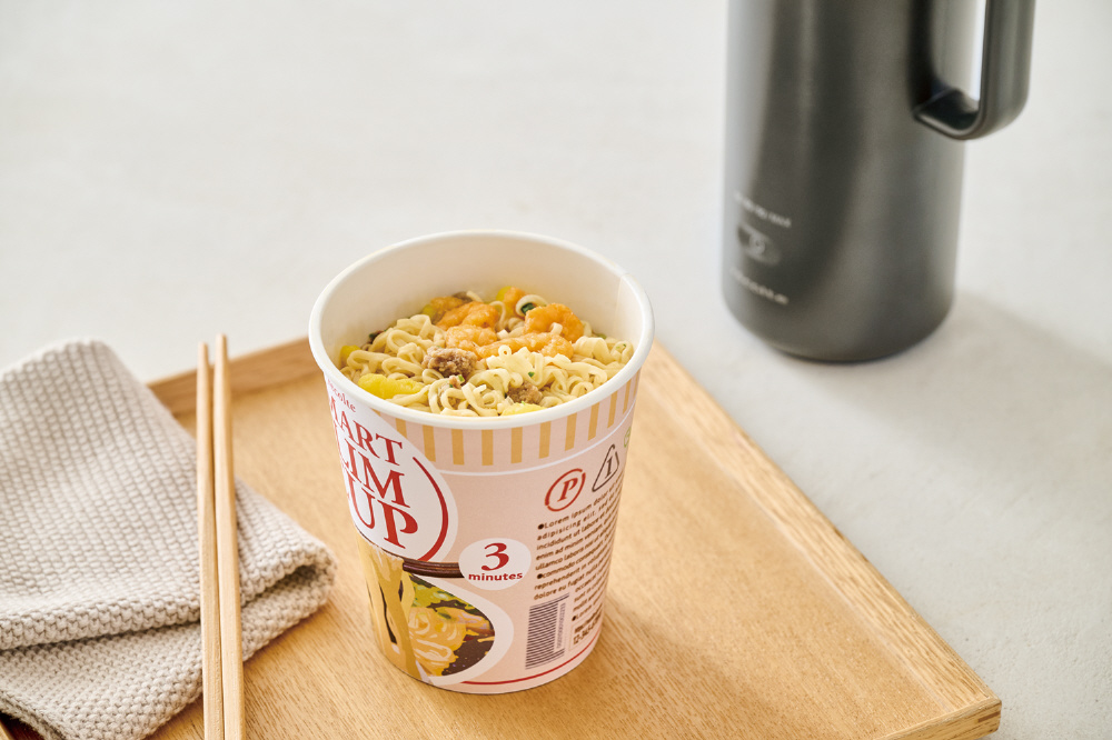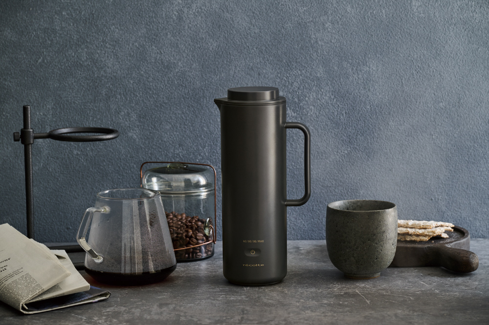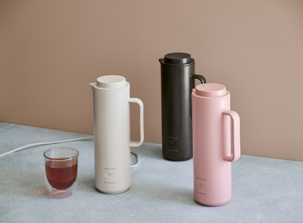 タンブラーのようなサイズ感で、持ち運びしやすい電気ケトル。湯温は60℃から4段階で選択可能。