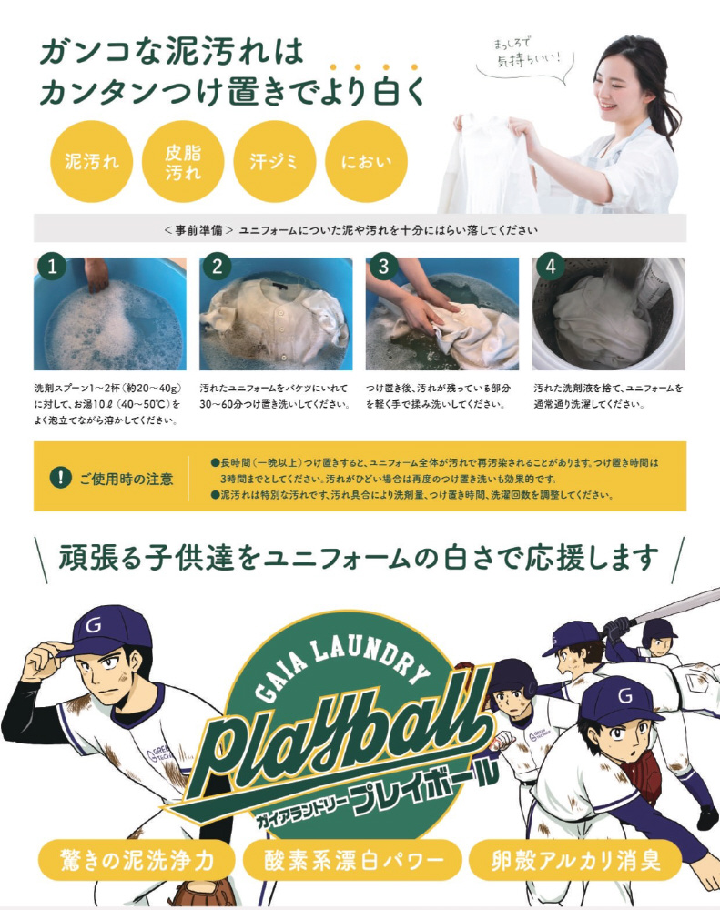 ユニフォームの汚れをより白く、独自配合成分で泥汚れをしっかり落とす