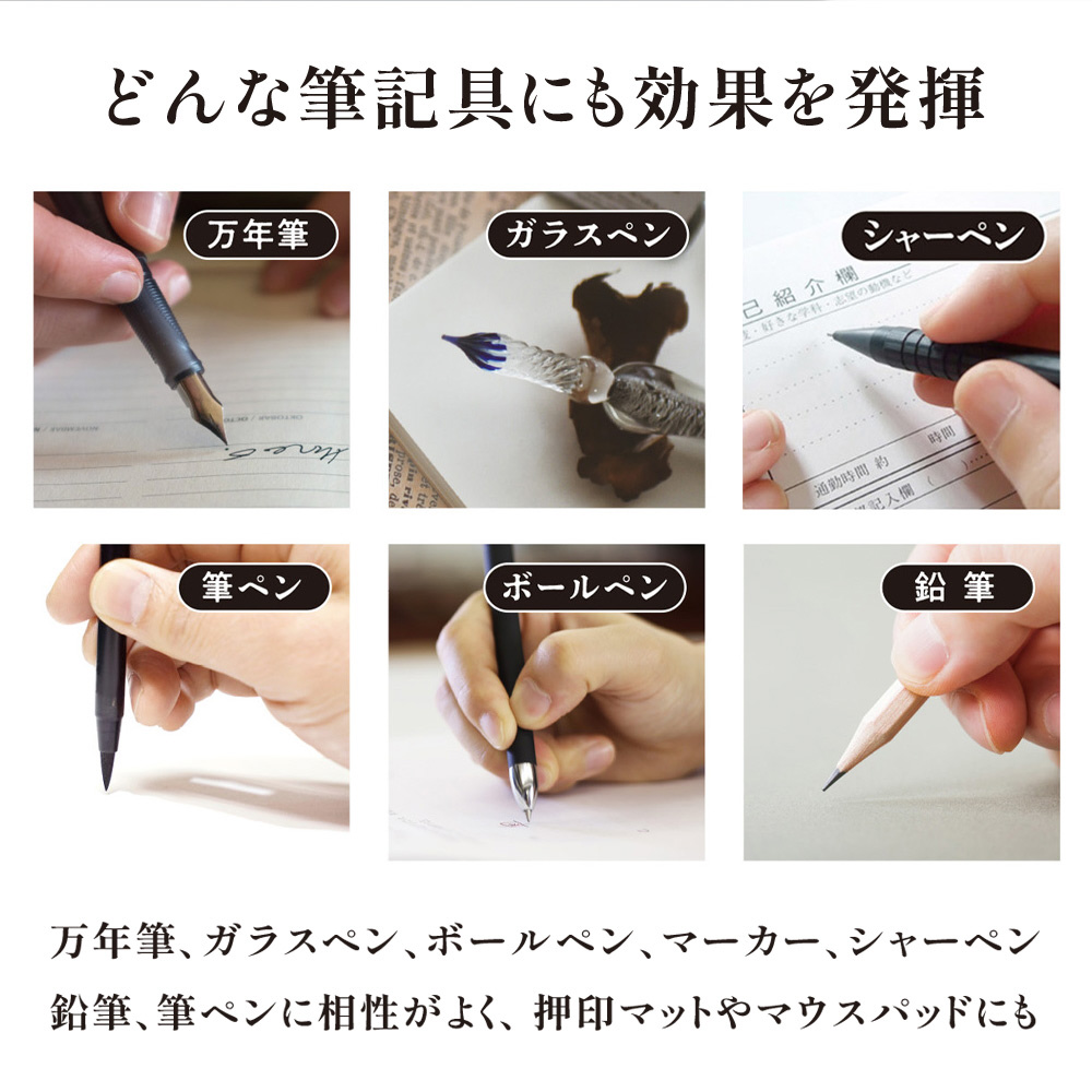 ●方眼が印刷されていることで紙やノートに文字を書く際に文字の中心や位置どりがしやすい。※視認性が高く、紙に透けやすい太さの黒ラインが文字を美しく書くためのサポートをします。