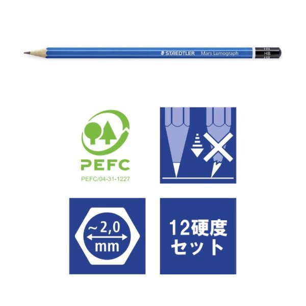 ●12硬度(6B、5B、4B、3B、2B、B、HB、F、H、2H、3H、4H)各1本入り