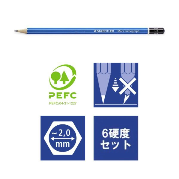 製図・ファインアート・デザインなどのプロフェッショナルユーザーから厚い信頼を受けている鉛筆。紙への定着性がよく均一な線が書けます。折れにくく磨耗が少なく滑らかな書き味です。