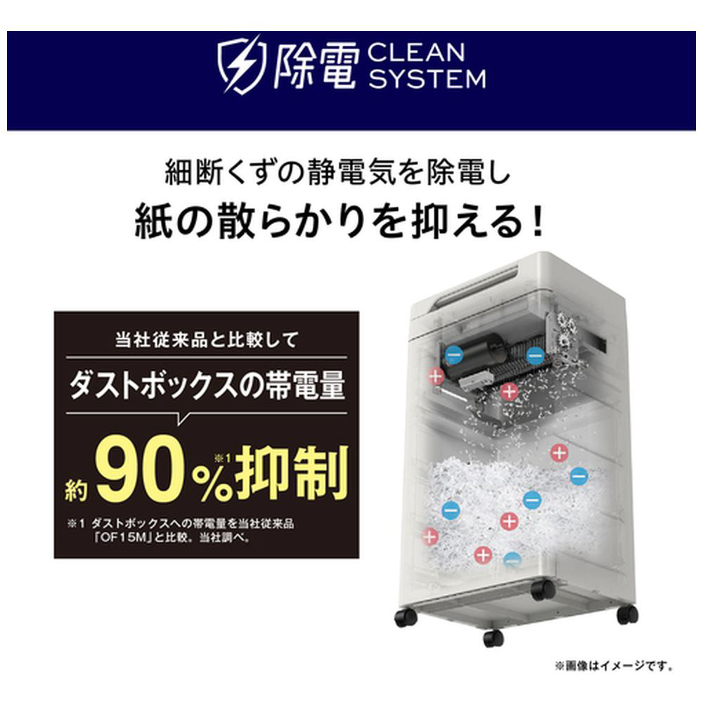 細断くずの静電気を除電しダストボックスへの張り付き・ごみ捨て時の舞い上がりを抑制する除電クリーンシステム搭載です。