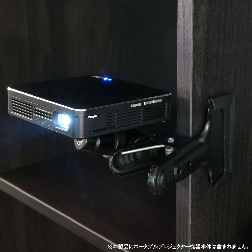 コンパクトサイズのモバイルプロジェクターを棚板やラックに取り付け!