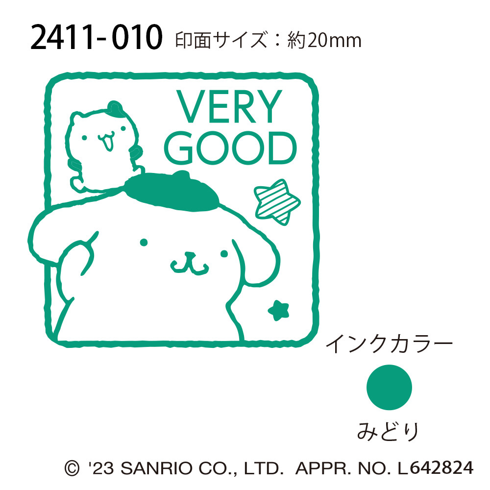 サンリオキャラクターズ浸透印SQ ポムポムプリン VERY GOOD 2411-010