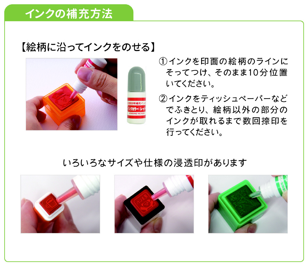 ※「こどものかお」の浸透印の一部は、当補充インクに適さないものがございます。