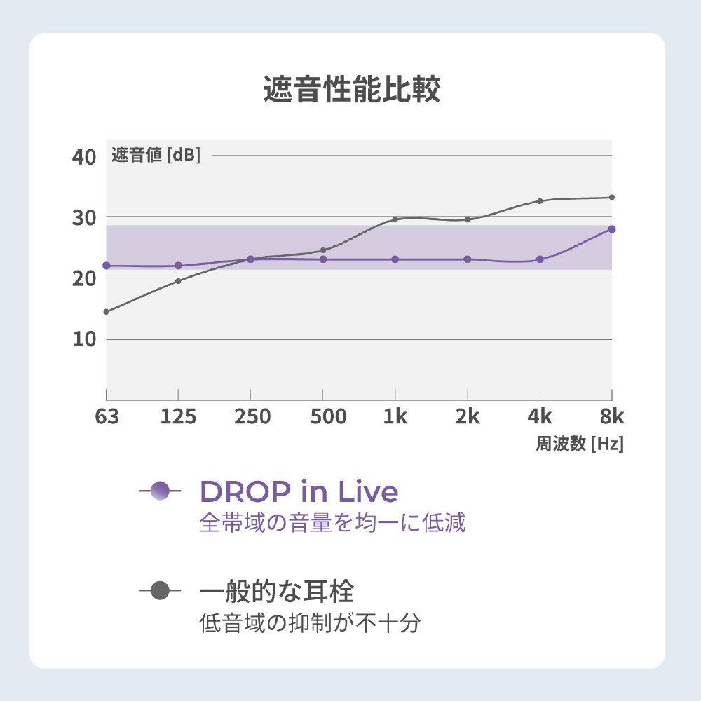 ○その瞬間を、研ぎ澄ます。守りながら楽しむイヤープラグ「DROP in Live」。