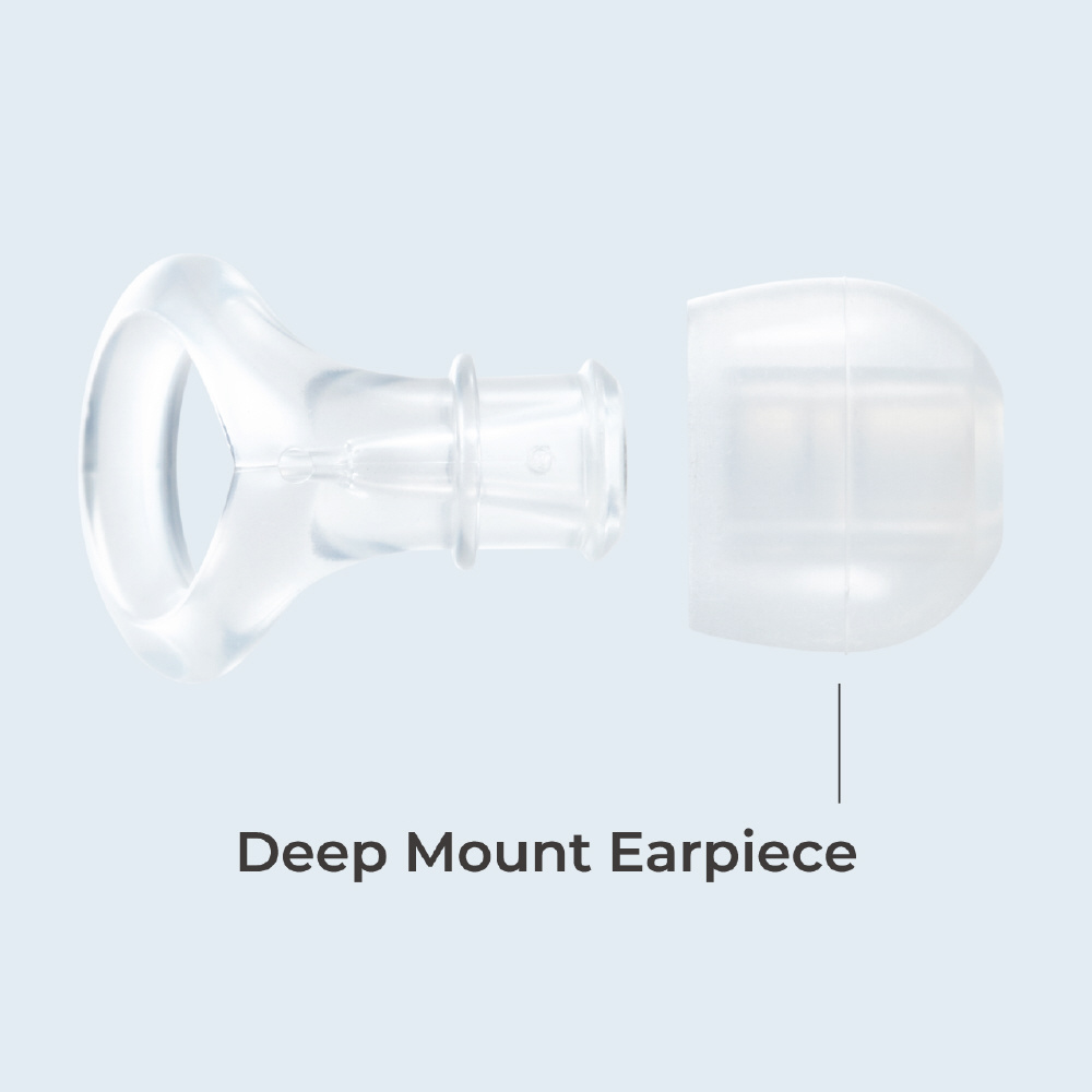 一般的なイヤーピースと比較して耳のより奥の広いエリアでフィットするため密閉性が高く、確かな遮音性能と落下防止を両立します。