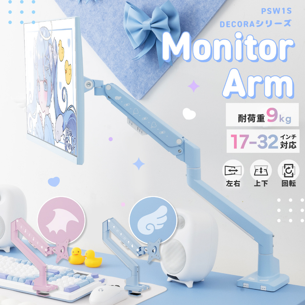 モニターアーム [1画面 /17〜32インチ] 3関節 PSW1S Decora Pastel Blue Angel PSW1SBLAG-O