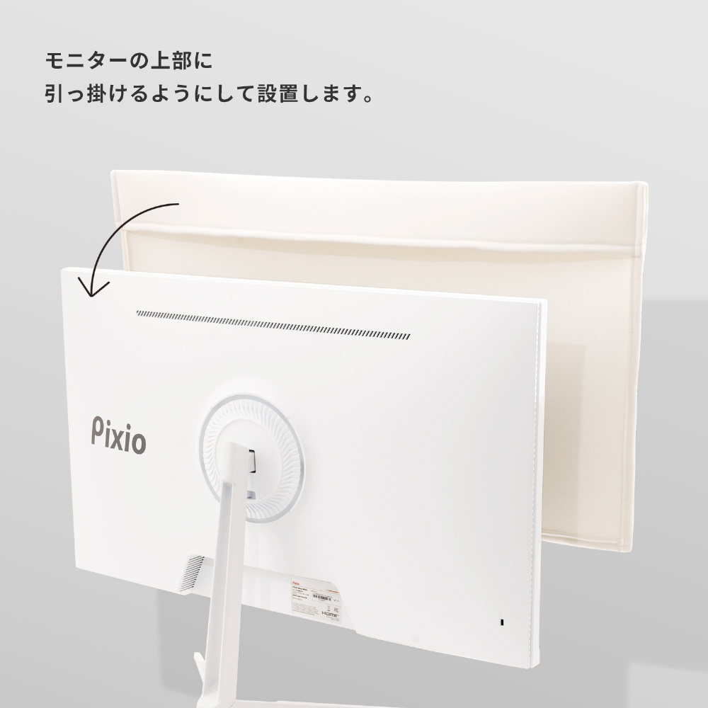 カバー上部の折り返し部分をモニターに引っかけるように設置します。