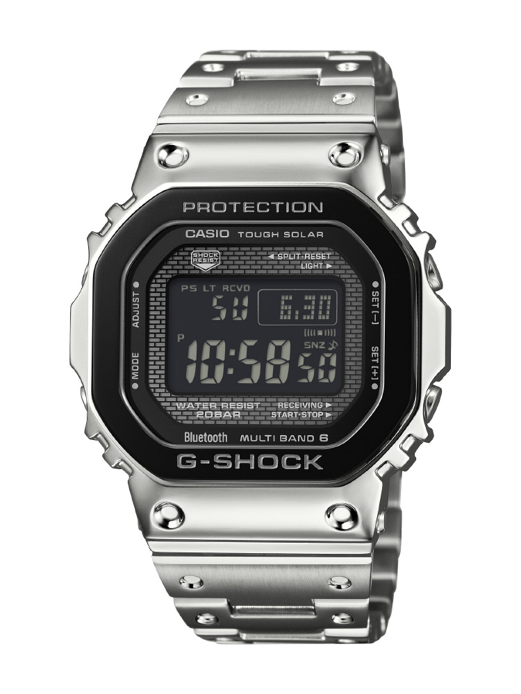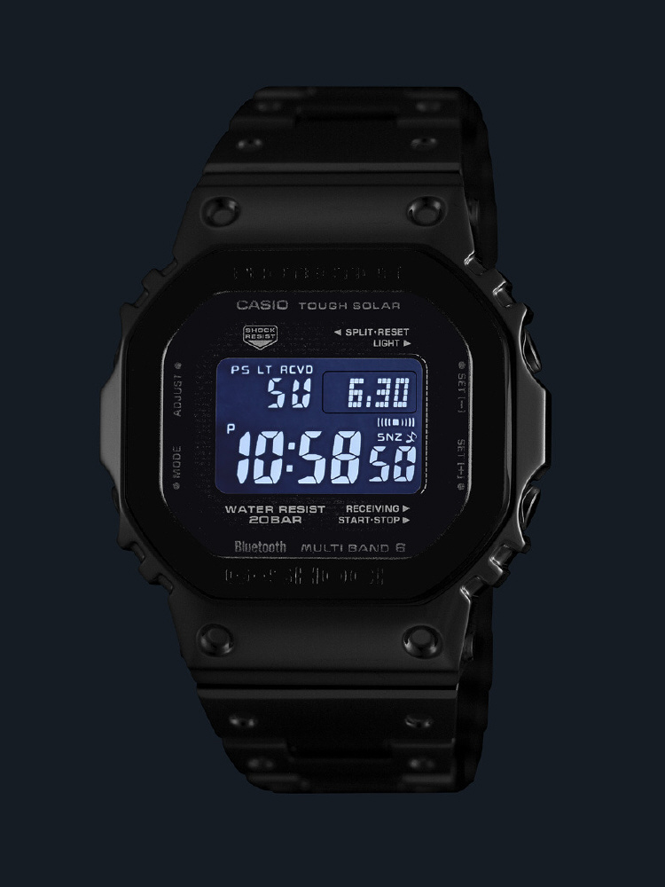 GMW-B5000BTはトップベゼルをミラー仕上げとし、ガラスの一部にシルバー蒸着を施すことで、タフなスタイルの中に精巧な輝きを加えています。