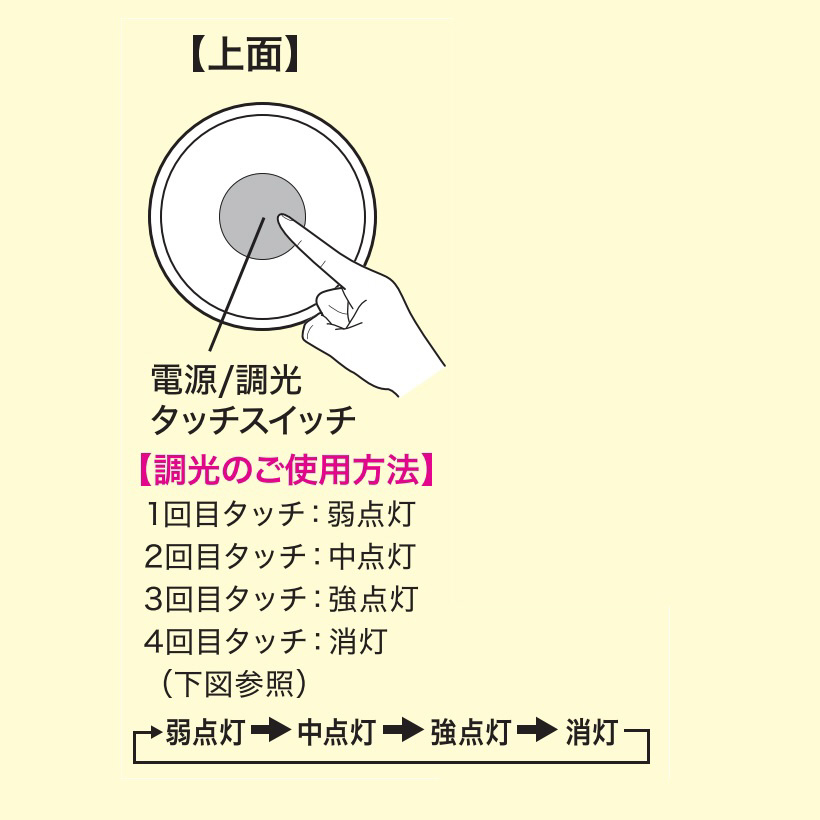 大きなタッチライト 上部のタッチライトでON/OFFと3段階調光
