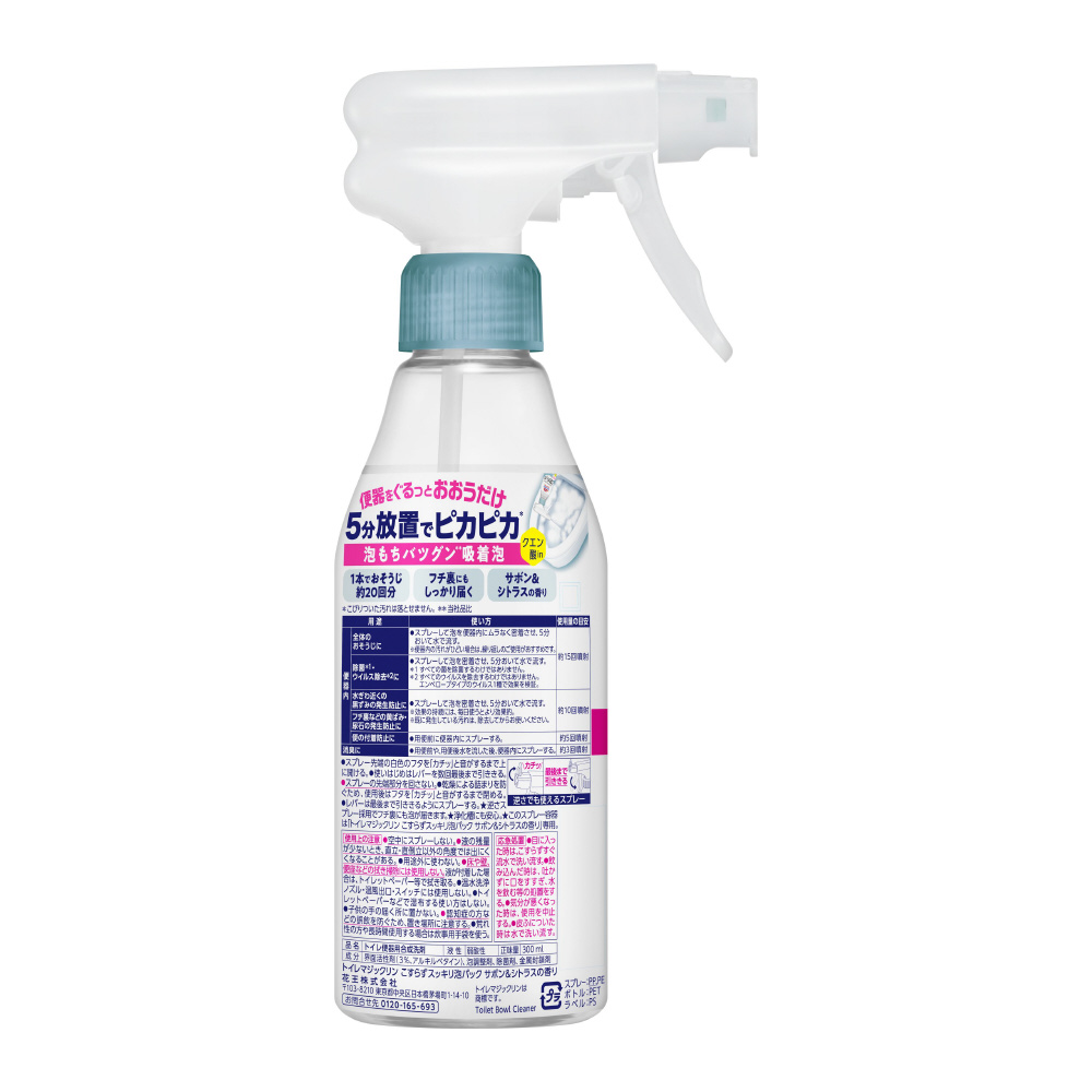 泡もちバツグン※1吸着泡で便器をぐるっとおおうだけ。ほったらかして(5分以上放置)トイレピカピカ!※2 ゴシゴシいらず※2でラクラクきれい!消臭もできるクエン酸in処方のトイレ便器内専用クリーナー!逆さスプレーできるから、フチ裏もしっかりパック。清潔感のあるサボン&シトラスの香り ※1当社品比※2便器内専用、こびりついた汚れは落とせません。