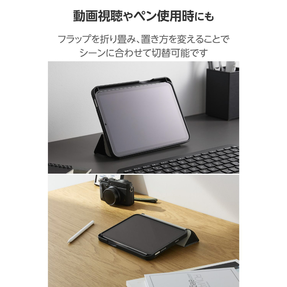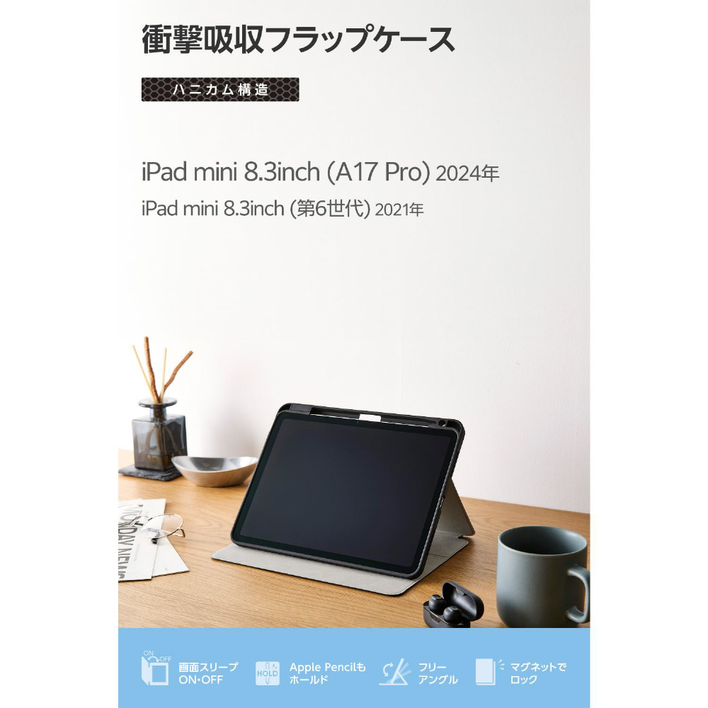 iPad mini(A17 Pro / 第6世代)用 フラップケース 衝撃吸収 Pencil収納 スリープ対応 ブラック TB-A25SSABK