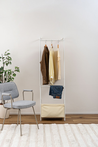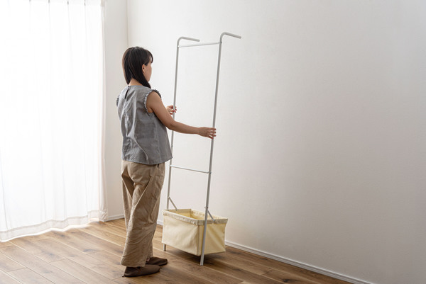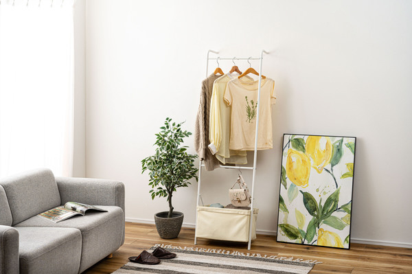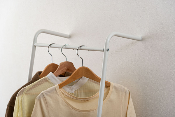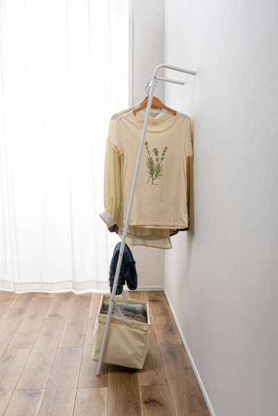 壁に立て掛け様々なシーンで使うことができるハンガー。