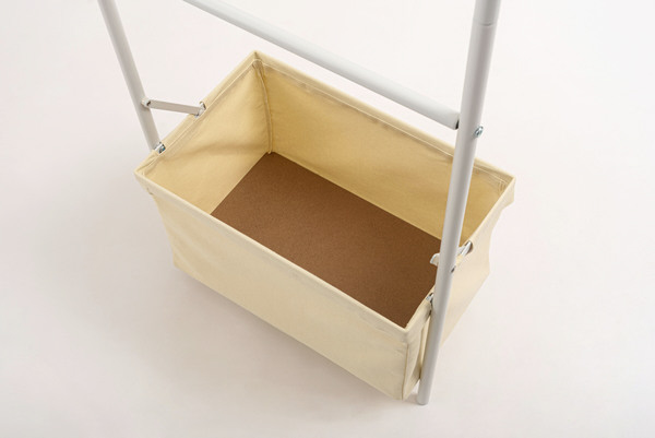 バスケットが付いているので、吊り下げ収納が難しいアイテムも収納可能。
