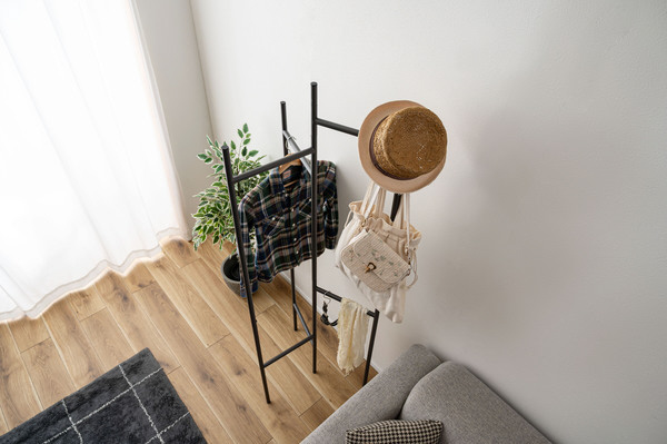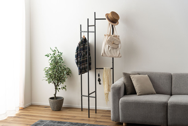 衣類やバッグを「魅せて収納」できるインテリア性の高さに加え、パタンと折りたためる便利な構造で、使わないときはスリムにしまえる設計です。