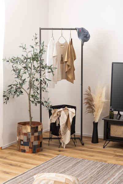 シンプルで無駄のないデザインのスチール製ハンガーラック