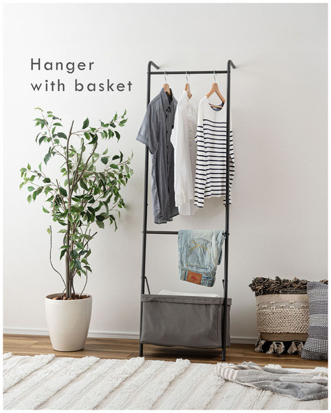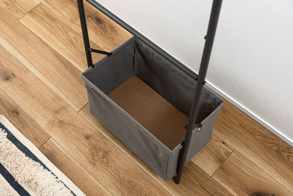 バスケットが付いているので、吊り下げ収納が難しいアイテムも収納可能。