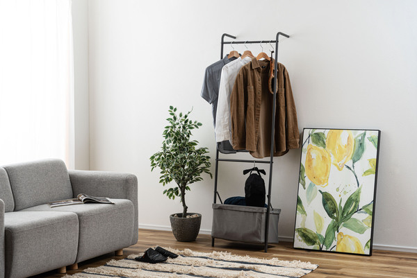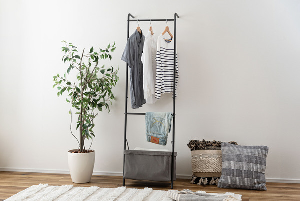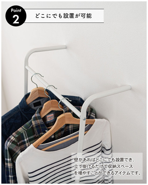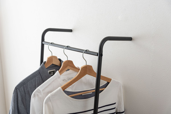 壁に立て掛け様々なシーンで使うことができるハンガー。
