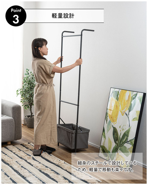 ●細身のスチールで設計されているので軽量で移動も楽々。