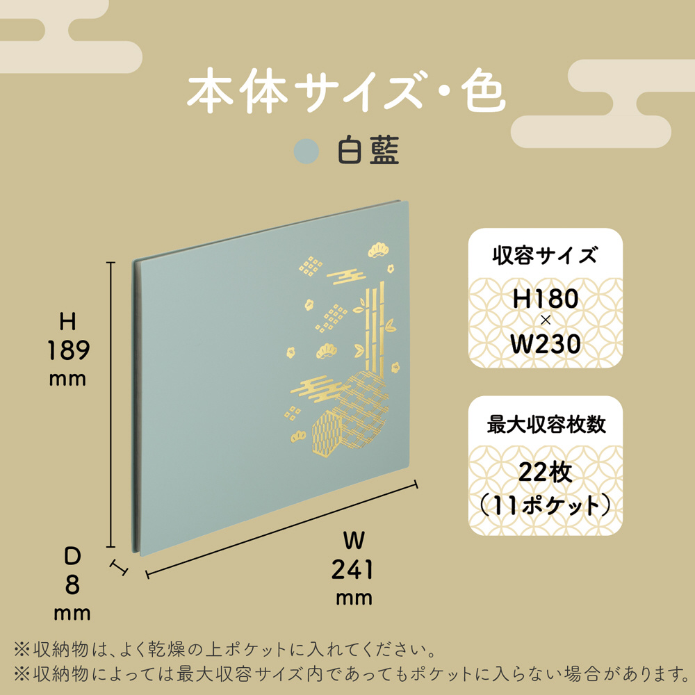 見開きサイズの切り絵・書き置き御朱印をきれいに収納できるポケットタイプの御朱印帳。