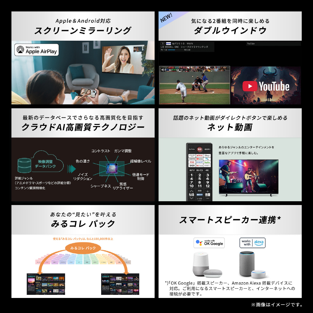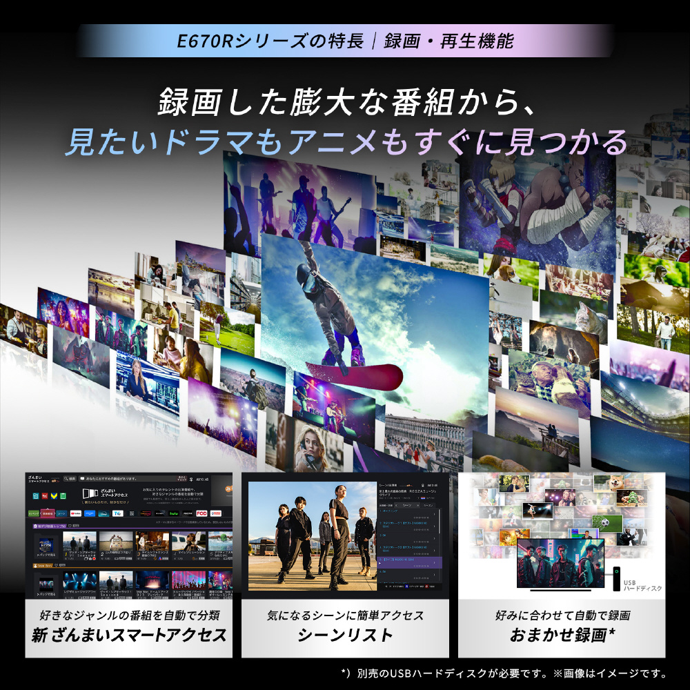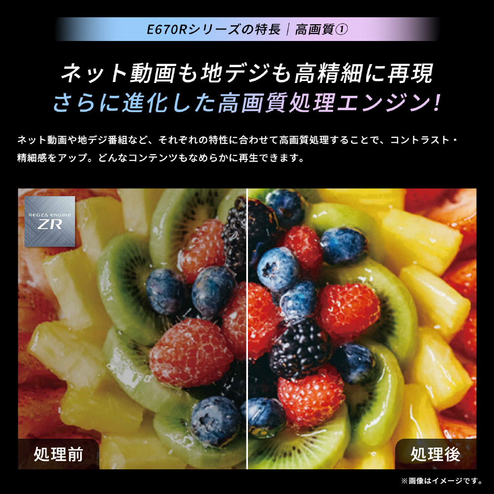 ノイズ抑制に加えさまざまな高画質処理により、地デジやBS番組を高画質化。