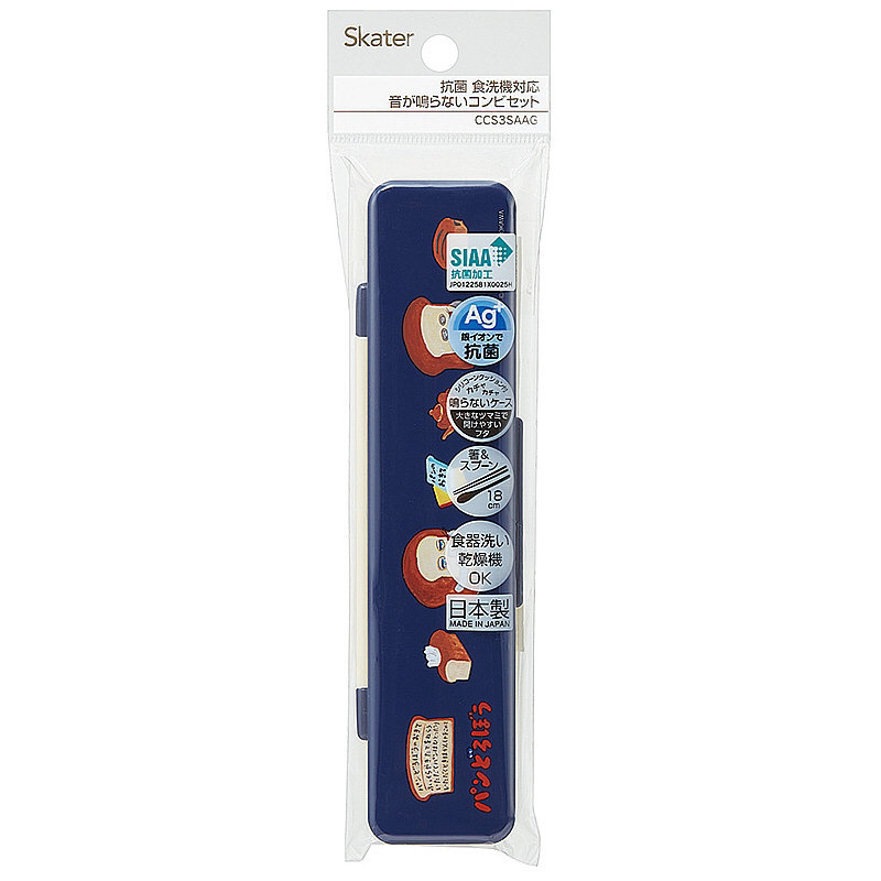 SIAA抗菌加工。Ag+銀イオンで抗菌仕様。細菌の増殖を抑制します。シリコンクッションが付いているのでケースはカチャカチャと音が鳴りません。さらに大きなつまみでフタが開けやすい。箸とスプーンがセットになっているのでお箸で食べにくい物はスプーンが便利です。食洗機対応でお手入れが簡単です。