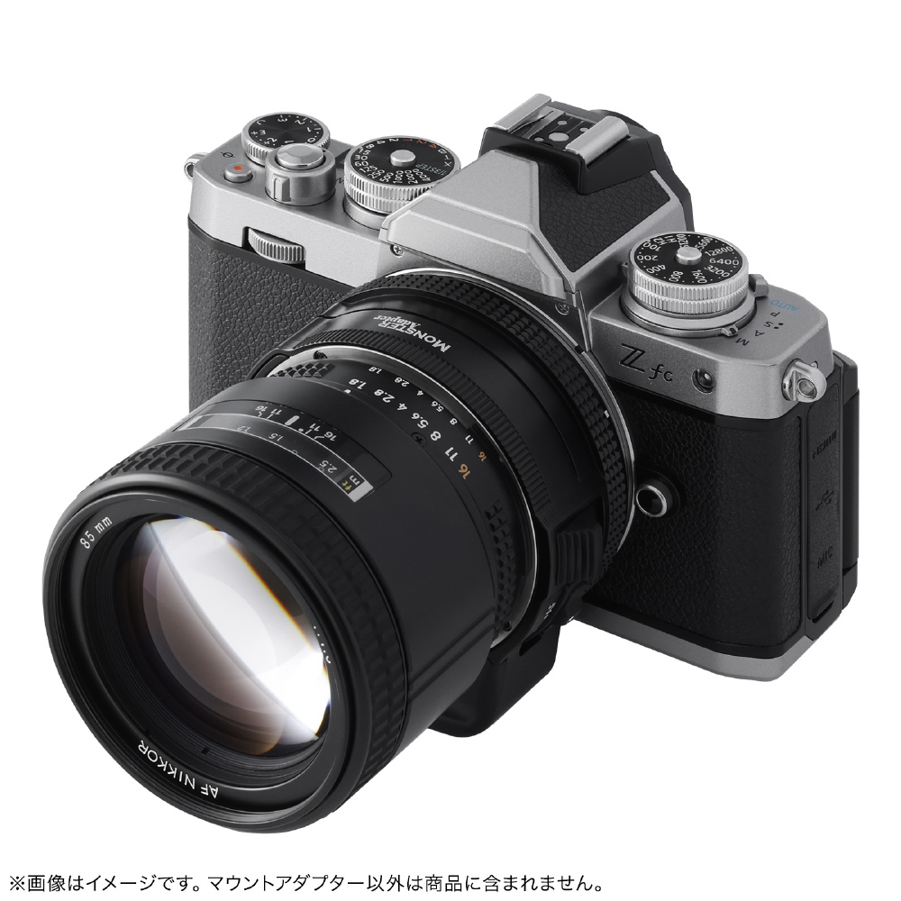 MonsterAdapter (モンスターアダプター) LA-FZ1は、ニコンFマウントレンズをニコンZマウントカメラで使用するための電子マウントアダプターです。AF駆動用モーターを内蔵しており、モーター非内蔵の初期AFニッコール(ボディ内AFモーター対応)および、Dタイプレンズをオートフォーカスで使用することが可能です。また、撮影画像の焦点距離、露出などの撮影データはExif情報として記録します。