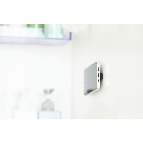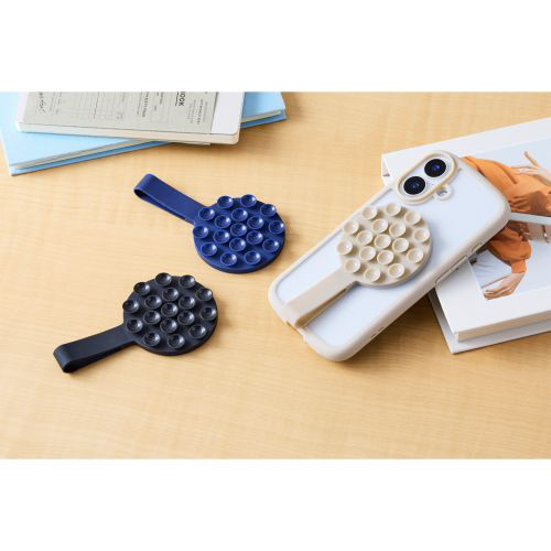 壁や鏡、窓ガラスなどの平らな面にシリコン吸盤で簡単に吸着可能。スマートフォンを自由な向きで固定できます。