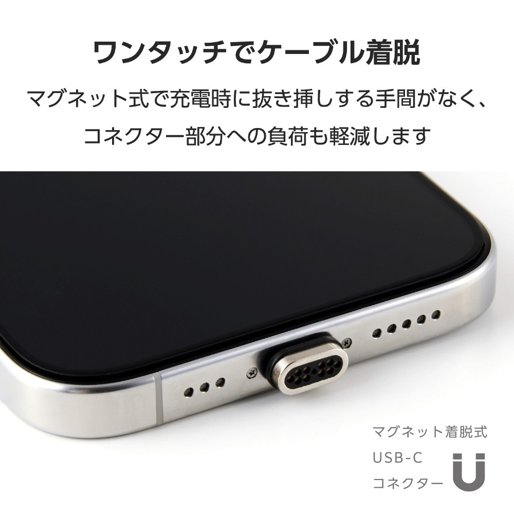 磁力でしっかり接続できる、着脱式マグネットケーブル・アダプター専用の付け替え用USB Type-Cマグネットコネクターです。充電時に抜き挿しする手間がなくなり、機器やコネクター部分への負荷も軽減します。